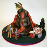 Believe it or not, that is a cake! Vera from Baking Obsession did an stunning job on this Skyrim Cake. The cake features Alduin, the World Eater. Vera made this amazing cake for her son. The writing in the front of the cake is in Dragon and reads “Happy Birthday Tim”.