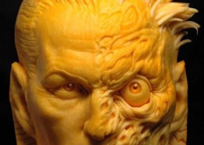 Villafane Studios is amazing. Not only do they make stunning pumpkin carvings, but they also make mindboggling sand sculptures and awesome statues. The detail on Two-Face is out of this world. This is the best Batman related pumpkin carving I’ve seen. Related posts: Great Scott! It’s A Back To The Future Pumpkin Carving! Awesome Frankenstein’s … Continue reading Terrific 3-D Two-Face Pumpkin Carving