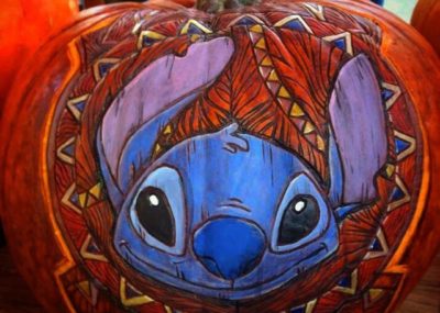 Stitch Pumpkin This gorgeous Stitch Pumpkin was made by the amazing Bridget McCarty. When Bridget decorates a pumpkin, she hand carves them and then she hand paints them. This gives her pumpkins depth and color that you don’t find in other pumpkins. This Stitch Pumpkin is so lovely. I love the background on this pumpkin. … Continue reading Six Hand Painted Pumpkins From Disneyland