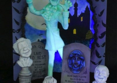 This Fabulous Disney Haunted Mansion Graveyard Cake features the Graves of Master Gracey and Madam Leota and three of the singing busts that sing Grim Grinning Ghosts.