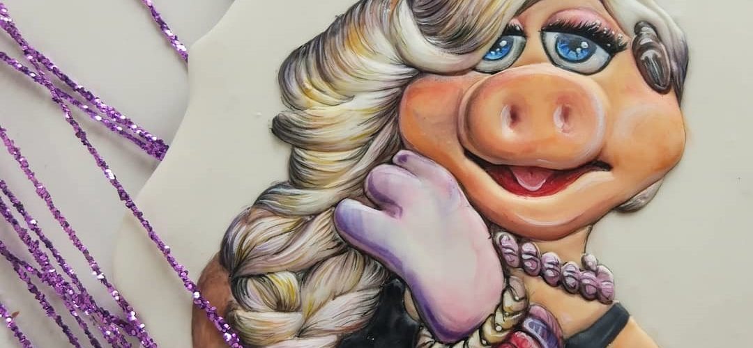 The glamorous Miss Piggy has never looked better than in this sensational cookie created by Art Biscotti. Miss Piggy has long hair which is tied in a braid and hanging over her shoulder. She has lovely blue eyes which are accented with long eye lashes. She is wearing a necklace, bracelets, and sleeveless black dress, … Continue reading Wait Till Kermit Sees This Lovely Miss Piggy Cookie