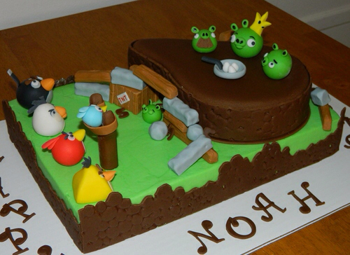 This awesome Angry Birds cake was made by Cakes By Maureen. Maureen’s Angry Birds and Green Pigs are terrific. Here is a close-up of the Green Pigs. Maureen’s Green Pig King is wonderful. Here’s a nice shot of the Angry Birds.