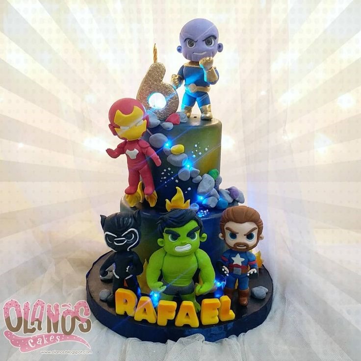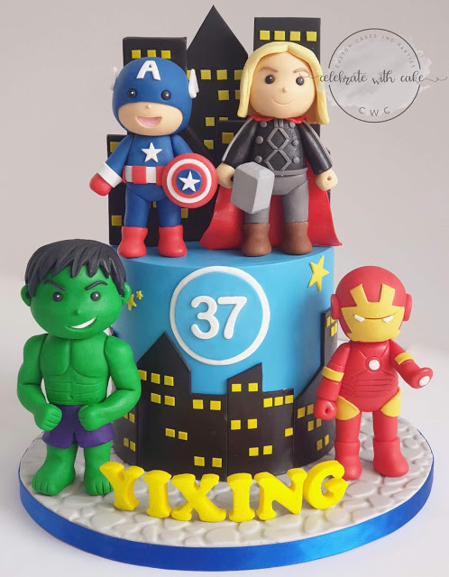 This Cute Kawaii Chibi Avengers cake has 3-d edible figures of the Hulk, Iron Man, Captain America, and Thor. This wonderful cake was made by Celebrate with Cake. It is a single tier cake with the silhouette of a cityscape on the side of the cake. In the sky above the city is the […]