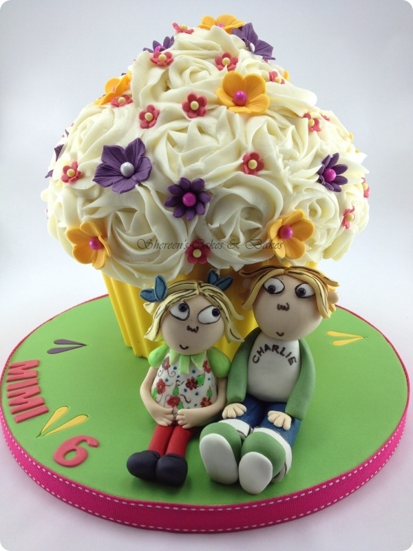 This cake features Charlie, Lola, and a Giant Cupcake.