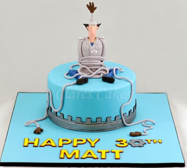 This awesome Inspector Gadget Birthday Cake was made by Clares Cakes. The design of this cake with Inspector Gadget tied up in his own arms is fantastic! Here are close-ups of this great cake: