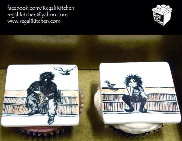 These terrific cupcakes feature Dream and Death from Neil Gaiman’s Sandman.