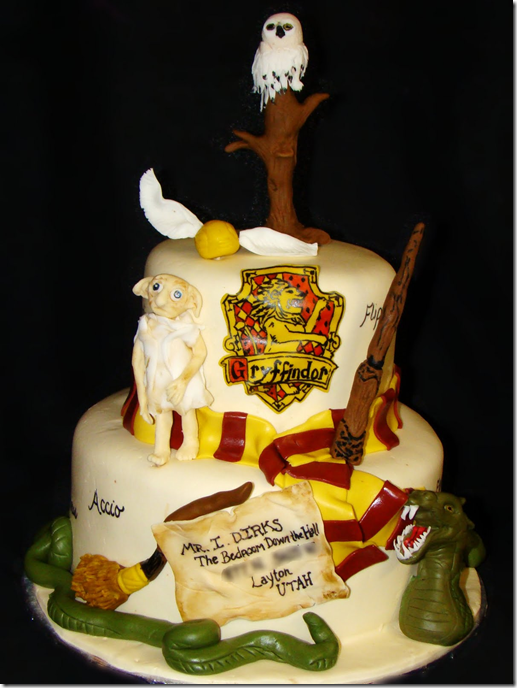 This awesome Harry Potter and the Chamber of Secrets Cake features Dobby, Hedwig, and the basilisk.