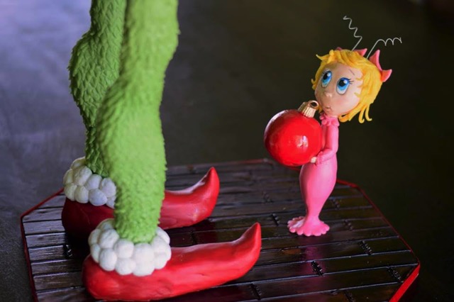 This Marvelous How The Grinch Stole Christmas Cake was made by Cynthia Jordan Lorow from The Vagabond Baker. This cake is done from the perspective of Cindy Lou Who as she encounters the Grinch dressed as Santa. This Marvelous How The Grinch Stole Christmas Cake was made for Home For The Holidays which is a cake collaboration where bakers shared edible