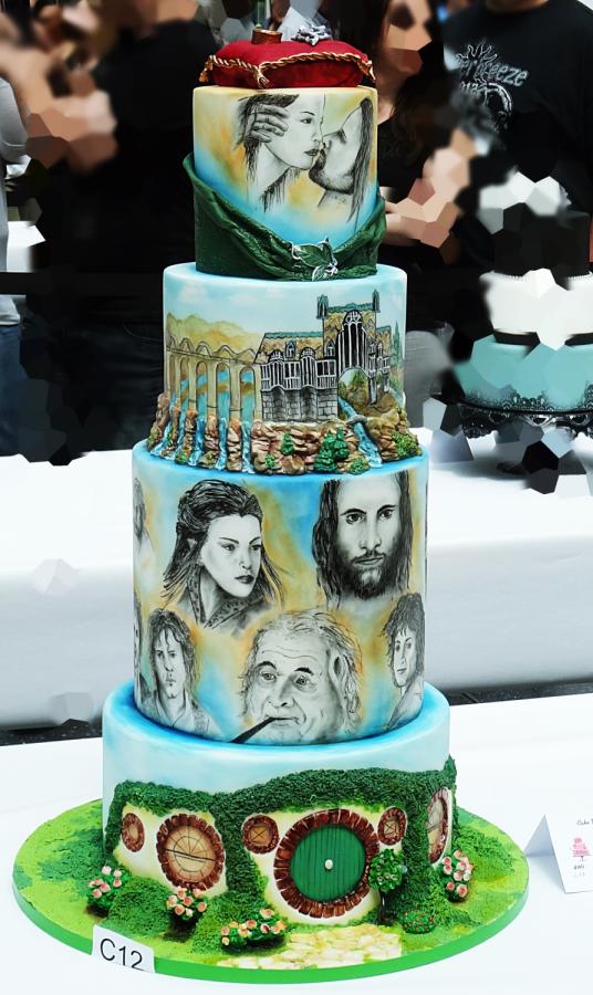 This Awesome Lord of the Rings Wedding Cake was made by Olanuta Alexandra. The bottom layer of the cake is a Hobbit House. The middle layer of the cake has Bilbo, Frodo, and Meri, Arwen, and Aragorn. This Wonderful cake was handprinted using petal dust. This cake received a Gold and best of Kategorie […]