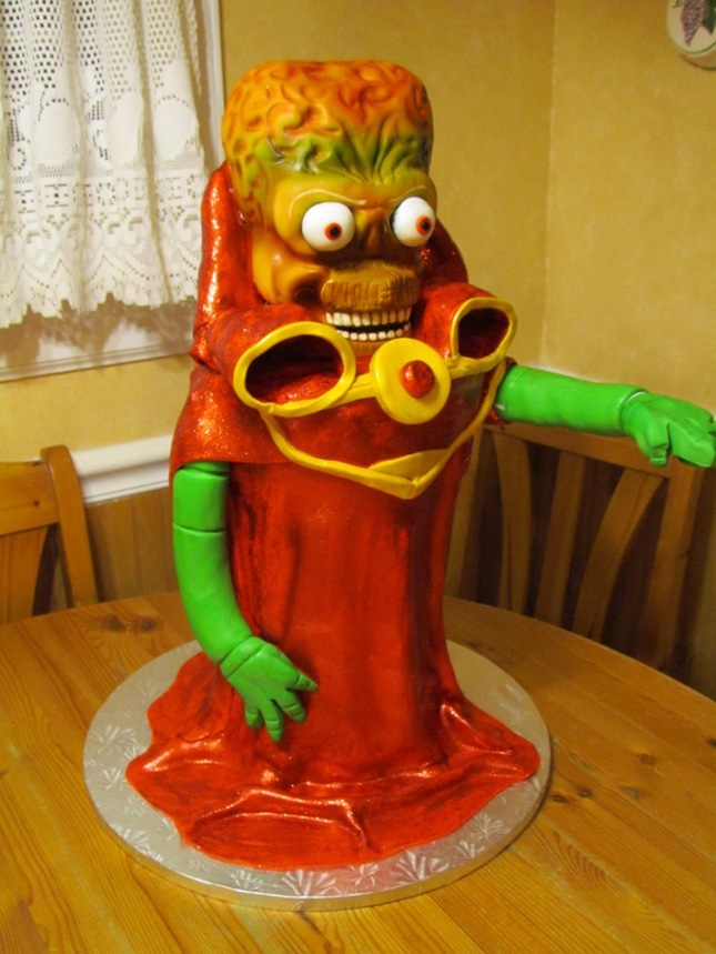 This marvelous Mars Attacks Cake is a 3-D statue of the Martain Ambassador.