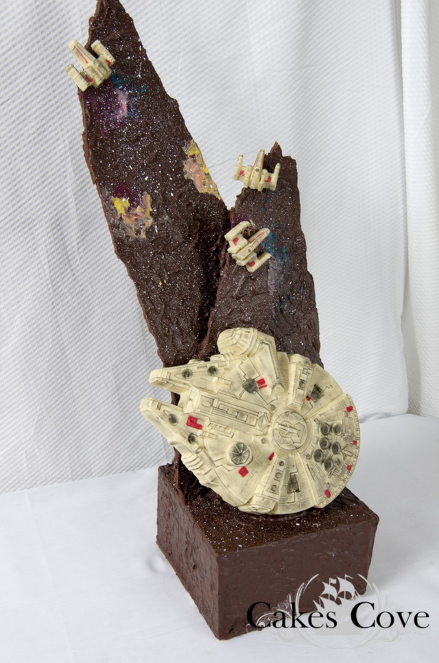 This amazing chocolate Star Wars centerpiece was made by Cakes Cove. This is the coolest chocolate Star Wars sculpture I’ve seen. The chocolate Millennium Falcon is amazing. Thanks to the amazing Cassandra from When Geeks Wed for telling me about Cakes Cove.
