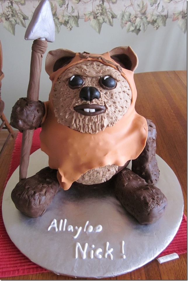 This terrific birthday cake is an amazingly realistic 3-D Ewok.