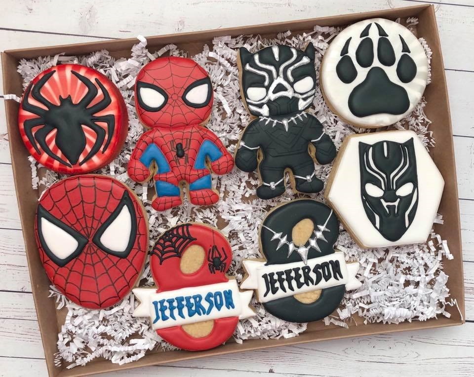 These sensational Spider-Man and Black Panther 8th Birthday Cookies were made by Sweet Desert Cookie Co. The cookies feature matching pairs of Spider-Man and Black Panther Cookies, so we get one cookie each of Spidey and the Panther, one each of their faces and logos, and two cool 8th Spider-Man and Black Panther themed birthday […]