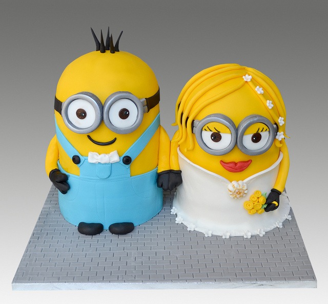 I now pronounce you minion and wife! This marvelous Minions Wedding Cake was made by Gelly’s Cakes. The two minion figures are terrific. Gelly’s design of the bride is absolutely wonderful. I could easily see her appearing in Despicable Me 3! Thanks to the awesome Jeff Rothman for sending me this cake! In addition, check