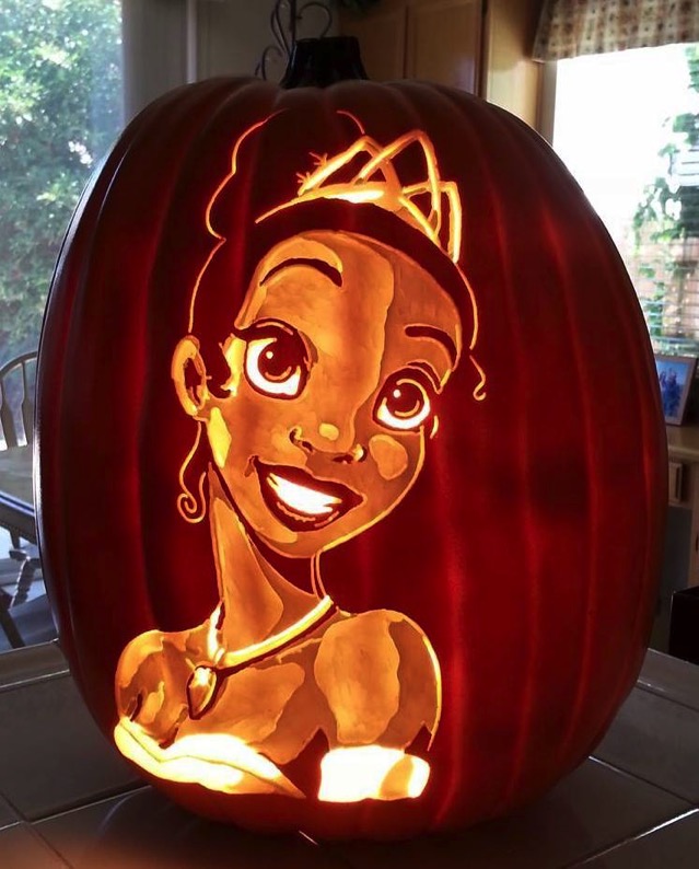 This superb Princess Tiana Pumpkin carving features Tiana wearing her crown. This wonderful Pumpkin Carving was made by Alex Wer – The Pumpkin Geek.